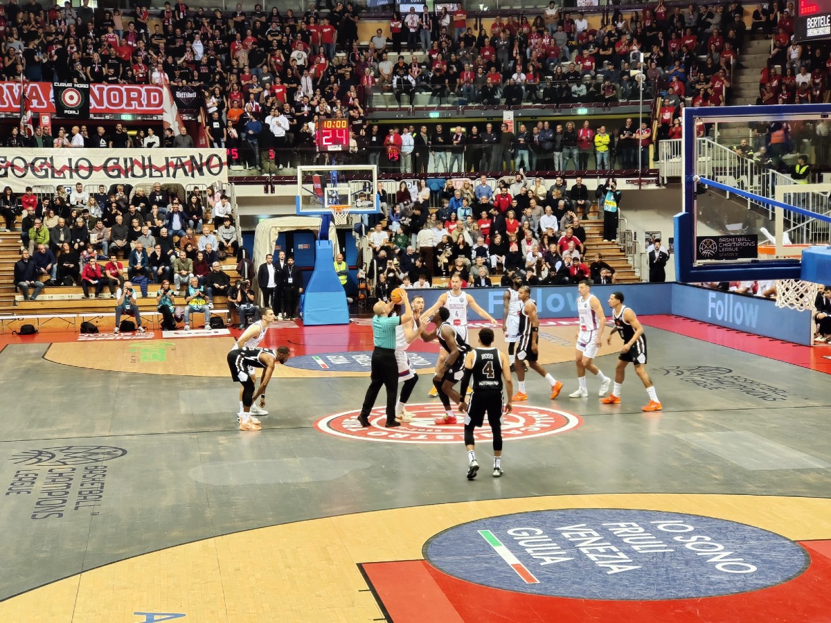 Circola davvero bene la palla nell'attacco triestino, con continui ribaltamenti, penetra e scarica ed extra-pass: liberato prima Ruzzier, poi Brown e infine Ramsey da fuori: 41-23 dopo 5', spettacolo al PalaTrieste e nuovo timeout esterno.