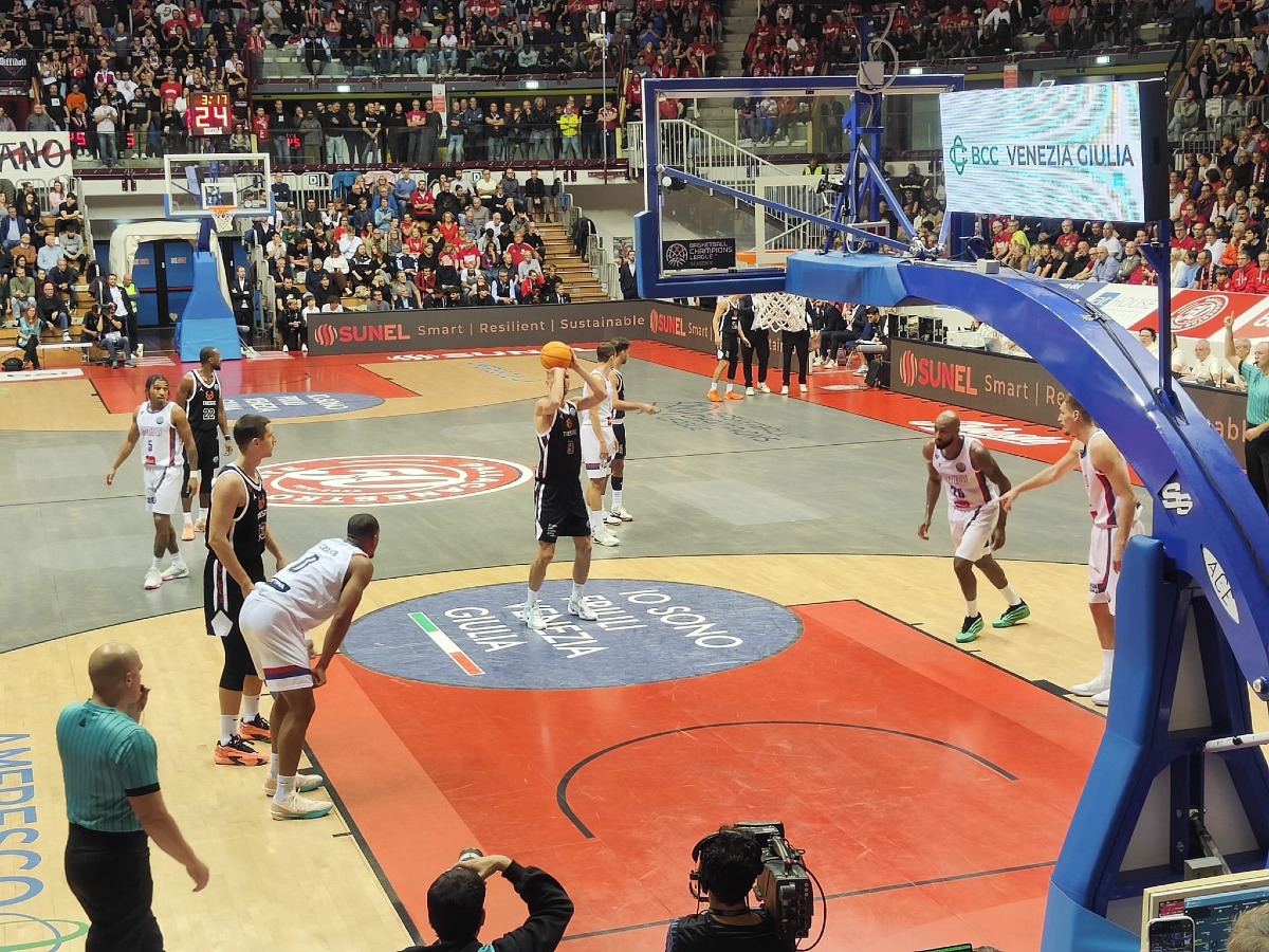 È la tripla di Brown (dopo diversi errori nel secondo tempo) a tagliare le gambe degli ospiti: è addirittura +23 nella bolgia del PalaTrieste.