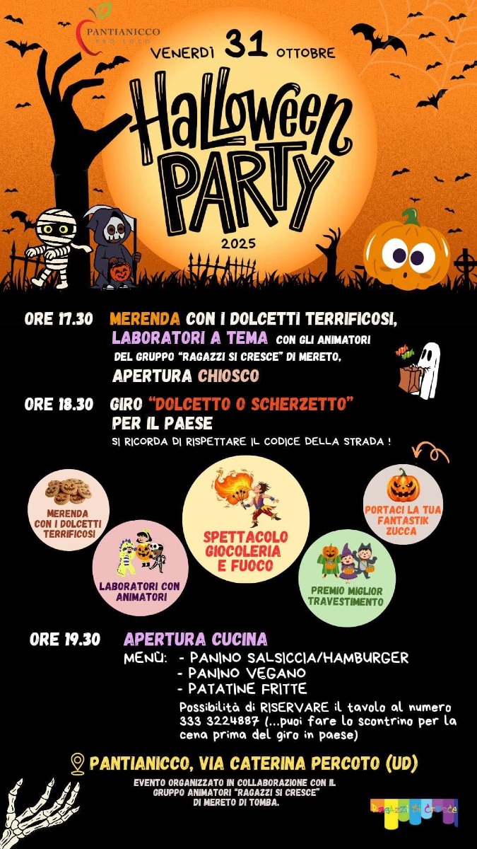 A Pantianicco, venerdì 31 ottobre, torna l’Halloween Party 2025 con dolcetti, spettacoli, laboratori e cucina per tutta la famiglia.