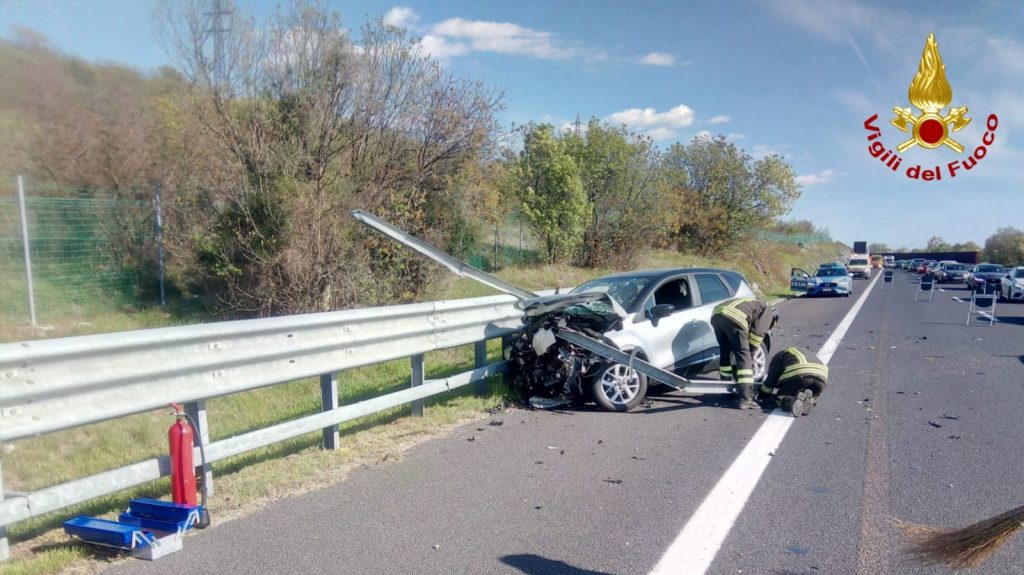 Incidente stradale poco dopo le 16 sul raccordo stradale RA13 Km 518+400 in direzione Venezia. Una Renault Captur con alla guida un donna, per cause da accertare, è andata a sbattere contro il guardrail.