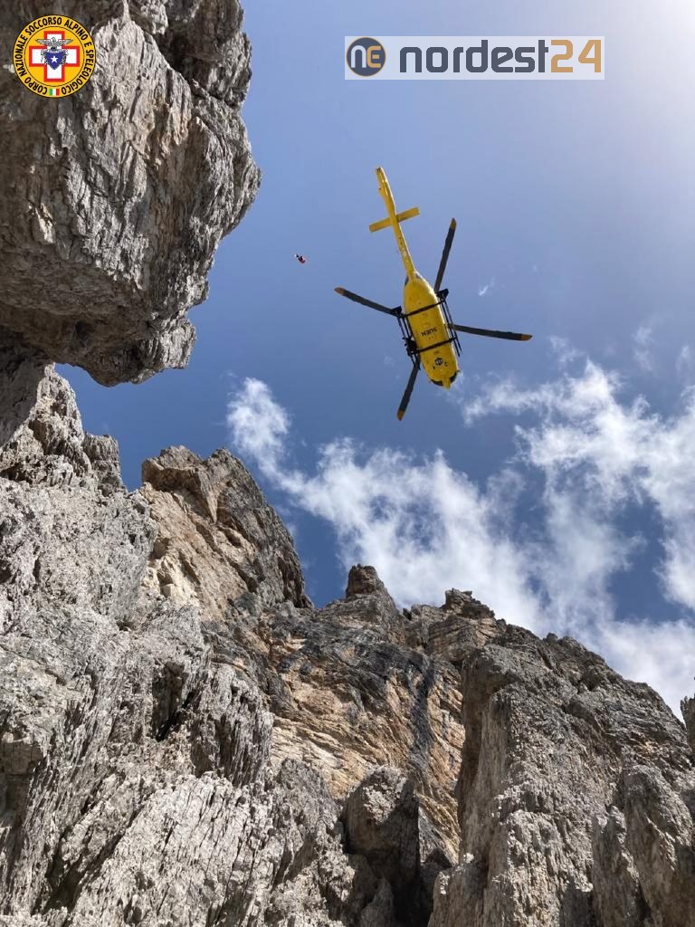 Dalle precise indicazioni del luogo dell'incidente ricevute, l'elicottero del Suem di Pieve di Cadore ha individuato velocemente il punto in cui si trovavano i due uomini e, abbassatisi sulla verticale, hanno scorto il corpo di A.N., 50 anni, di Erto e Casso (PN), 150 metri più in basso.