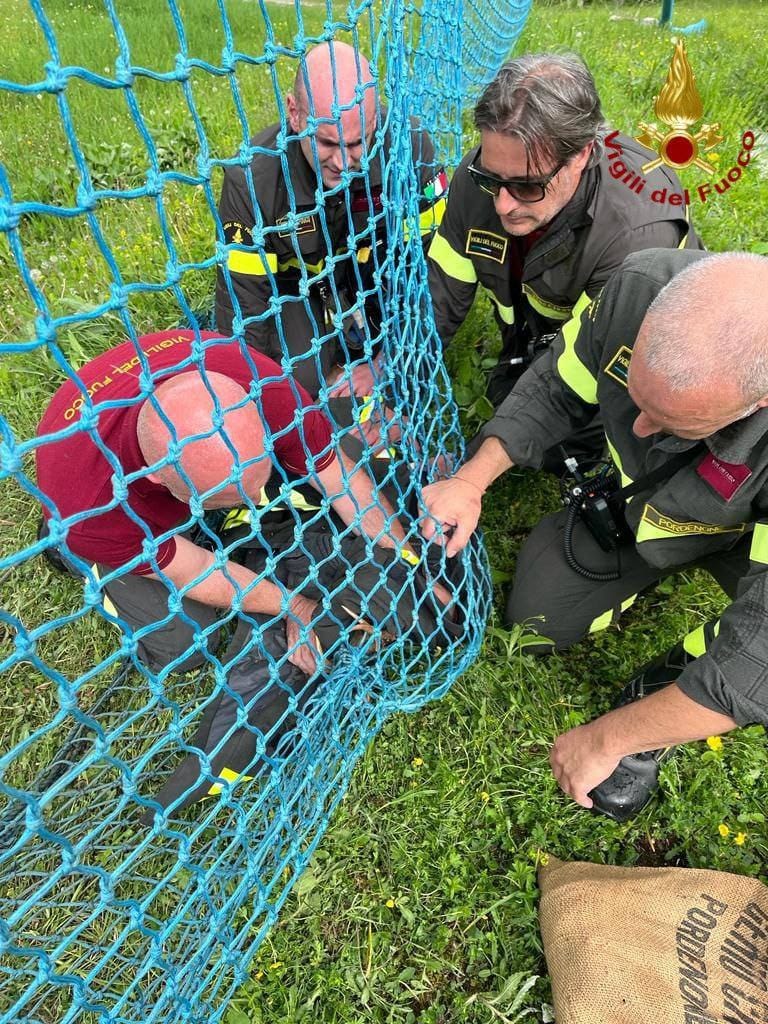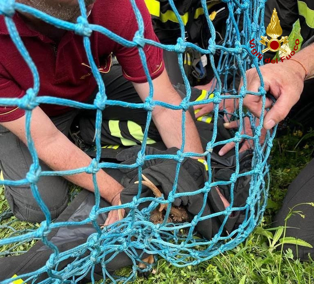 I VVF hanno provveduto a tranquillizzare il capriolo coprendogli gli occhi e lo hanno liberato dalla rete che lo intrappolata. Una volta libero e dopo che i sui soccorritori gli avevano tolto la benda dagli occhi l'animale ha guadagnato velocemente la boscaglia.