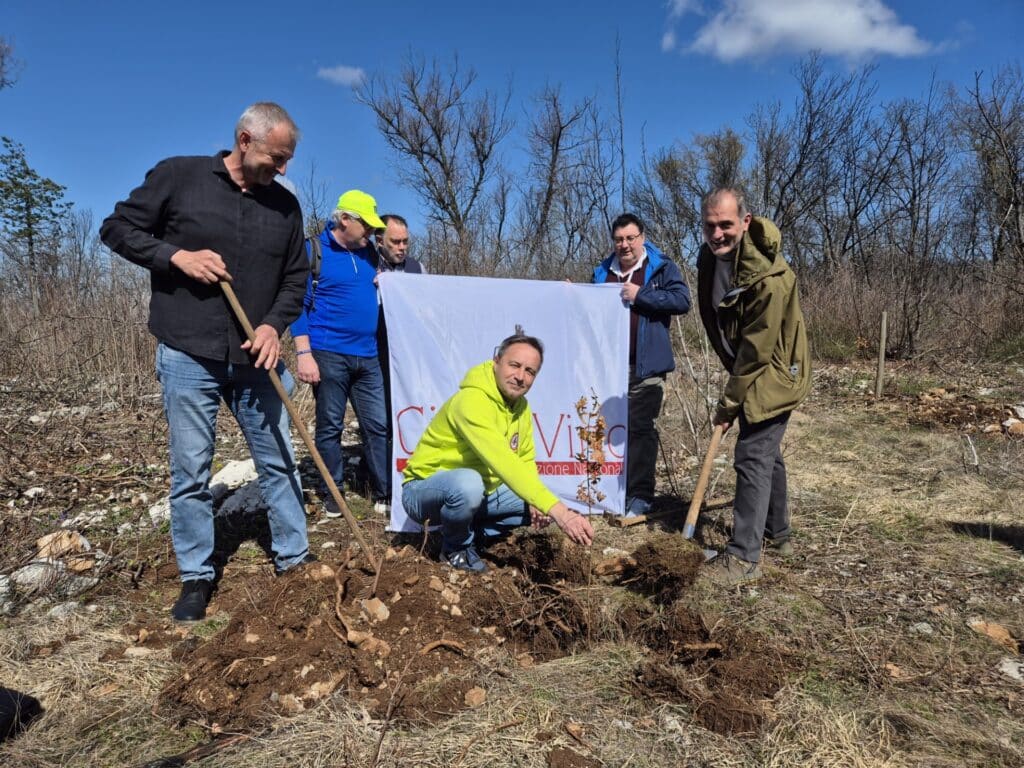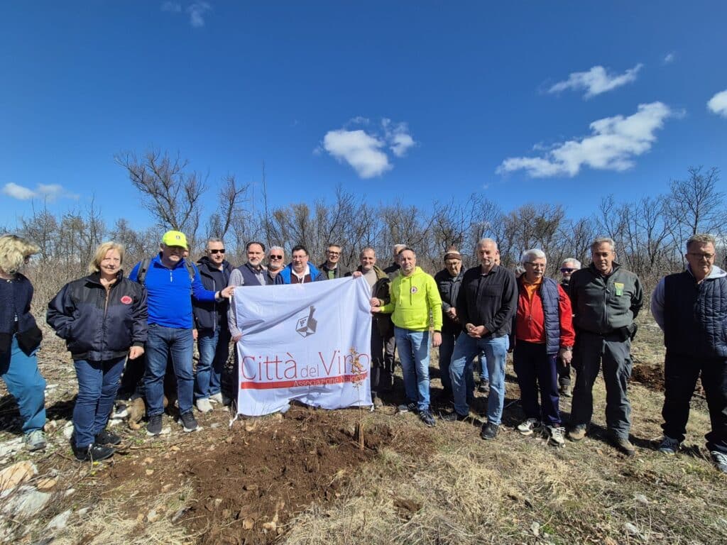 A Medeazza di Duino Aurisina, piantati 50 alberi di rovela grazie all'asta benefica delle Città del Vino per il recupero del Carso dopo gli incendi del 2022.