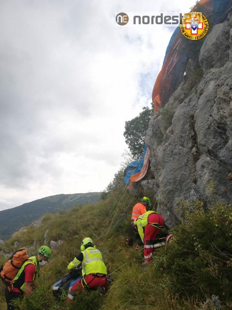 Il parapendista è caduto su un rilievo roccioso impattando violentemente proprio sulle rocce. La vela è rimasta impigliata più in alto, trattenendolo dal precipitare ulteriormente.