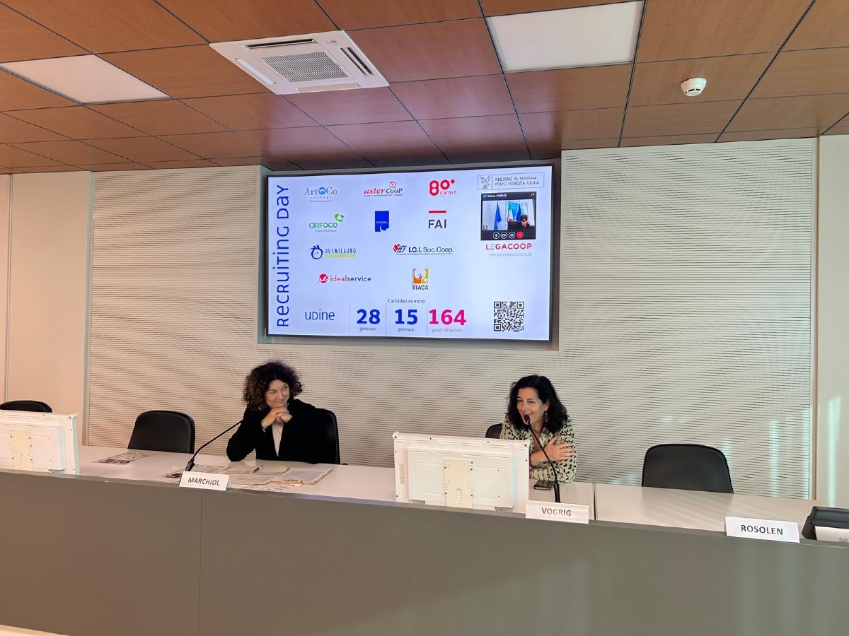 I dettagli della giornata di reclutamento per selezionare candidati e candidate da inserire nelle 10 cooperative attive sul territorio regionale sono stati illustrati il 15 dicembre, nel corso di una conferenza stampa tenutasi nel palazzo della Regione a Udine. A raccontare contenuti e realtà interessate l’assessore regionale al Lavoro, Formazione, Istruzione, Ricerca, Università e Famiglia Alessia Rosolen, la responsabile dei Servizi alle Imprese della Direzione centrale lavoro, formazione, istruzione e famiglia della Regione Fvg Sabrina Marchiol, e la presidente di Legacoop Fvg Michela Vogrig.