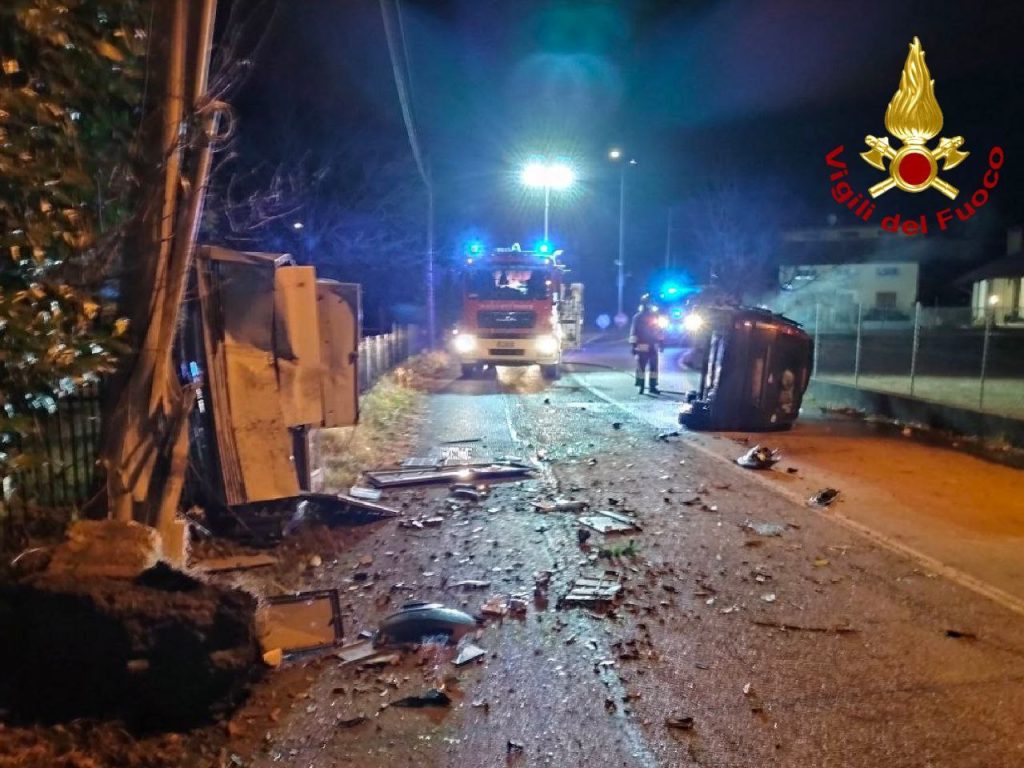 Pinzano al Tagliamento (PN). Questa notte la squadra dei Vigili del Fuoco del Distaccamento di Spilimbergo è intervenuta alle 23.45 per la fuoriuscita autonoma di un auto in Località Borgo Ampiano in comune di Pinzano al Tagliamento. Nel violento impatto l'auto ha divelto palo della linea telefonica stradale e le cabine Telecom ed Enel annesse, rovesciandosi poi sul fianco. I vigili del fuoco, assieme al personale sanitario, hanno soccorso l'occupante molto scosso e messo in sicurezza lo scenario. Sul posto Ambulanza di Spilimbergo, Elisoccorso e Carabinieri di Spilimbergo.