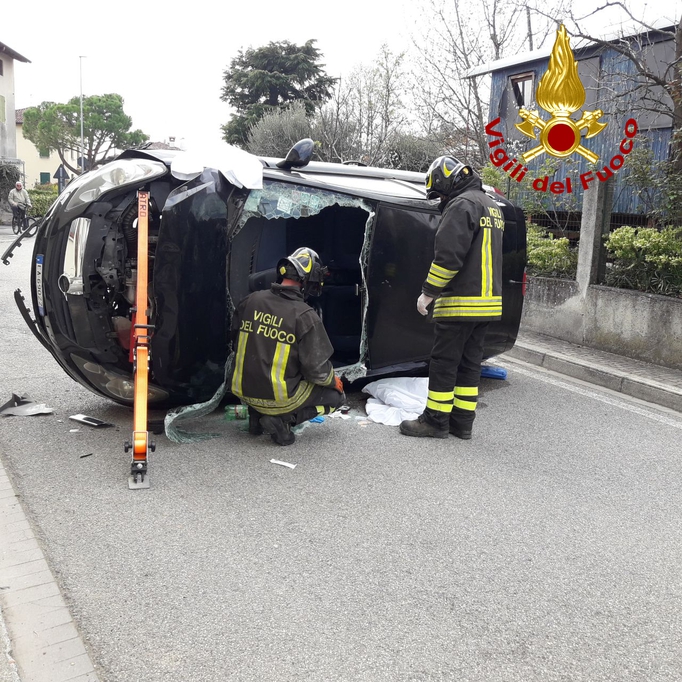 I pompieri giunti sul posto hanno trovato un'autovettura, unico mezzo coinvolto nel sinistro, che per cause da accertare si era cappottata su un fianco e l'autista era intrappolata al posto di guida. I Vigili del fuoco dopo aver stabilizzato il veicolo hanno tagliato il parabrezza del mezzo e, in collaborazione con il personale sanitario del 118 hanno estricato dall'autovettura la guidatrice che è stata presa in carico dai sanitari.