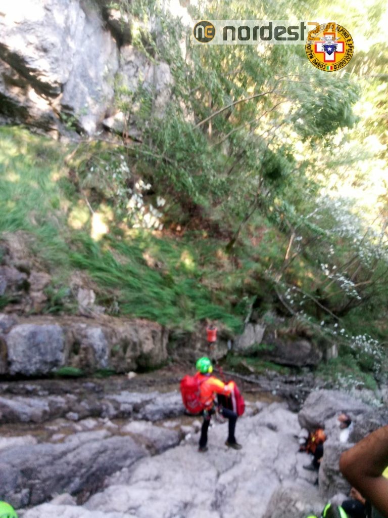 Dopo averne perlustrato un primo senza risultato, una seconda squadra ha sentito dei richiami di aiuto nei pressi di un secondo rio discosto dal sentiero e seguendolo, dopo un centinaio di metri ha ritrovato la giovane.