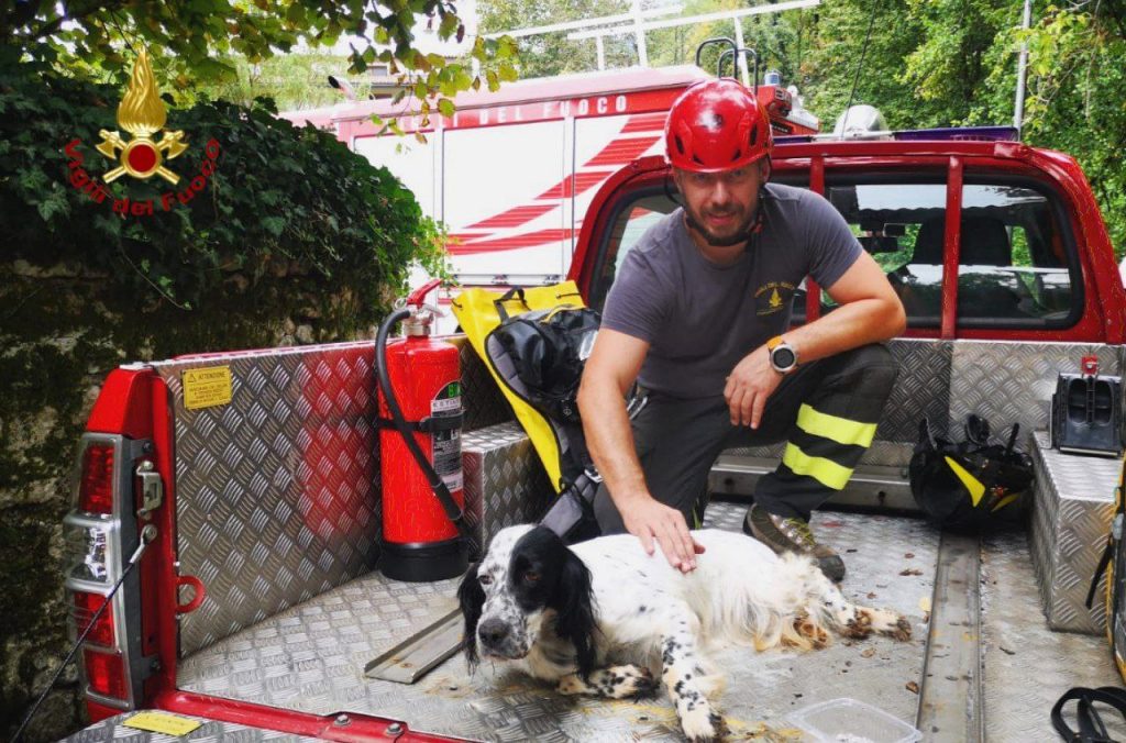 Scivola e rimane bloccato: setter salvato dai Vigili del Fuoco di Sacile