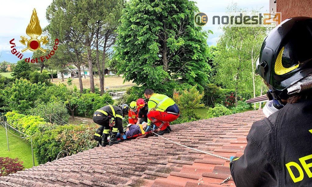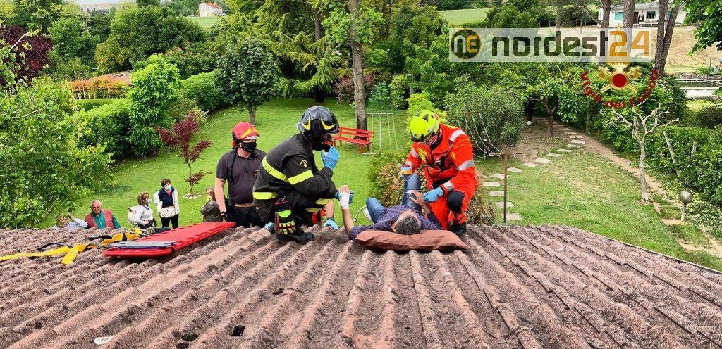 La persona scivolava sul tetto di un porticato riportando un trauma all'anca che richiedeva l'intervento dei Vigili del fuoco e del personale sanitario.