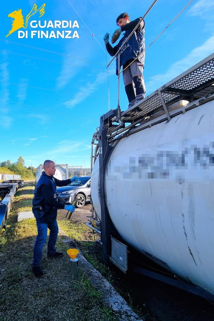 UDINE/VERONA - Le Fiamme Gialle del Comando Provinciale Udine e Verona, nel corso del costante controllo economico del territorio e delle principali arterie ferroviarie, quotidianamente svolto nelle rispettive provincie, hanno sottoposto ad ispezione alcuni vagoni ferroviari “tank container” adibiti al trasporto di sostanze chimiche e destinati verso il sud Italia.