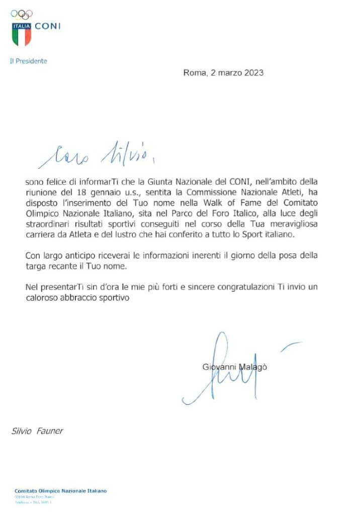 Silvio Fauner, il suo nome nella Walk of Fame al Foro Italico