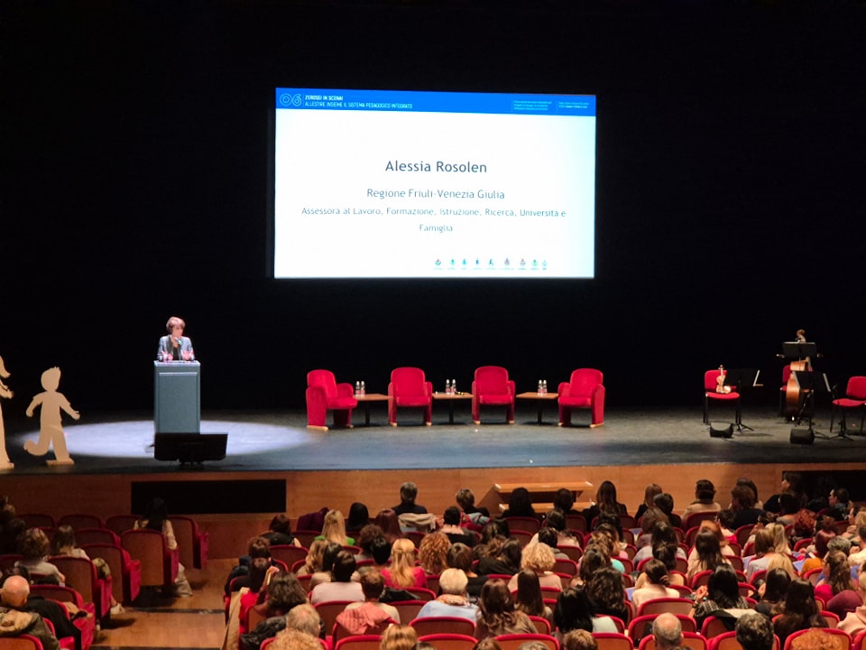 UDINE - "Per il prossimo anno lavoriamo a un testo unico per tutto il sistema 0-6 anni che metta insieme le iniziative che la Regione fa nel supportare e nel dare risposte non solo al sistema, ma anche alle famiglie, con l'obiettivo di garantire l'universalità dell'accesso a tutti i cittadini". Lo ha affermato l'assessore regionale a Istruzione, Lavoro, Formazione, Università e Ricerca Alessia Rosolen all'evento "ZeroSei in scena! Allestire insieme il sistema pedagogico integrato", una giornata al Teatro Nuovo Giovanni da Udine dedicata alla formazione di tutti coloro che si dedicano alla crescita dei bambini e delle bambine nei servizi 0-6 anni, in contesti pubblici, privati e paritari.