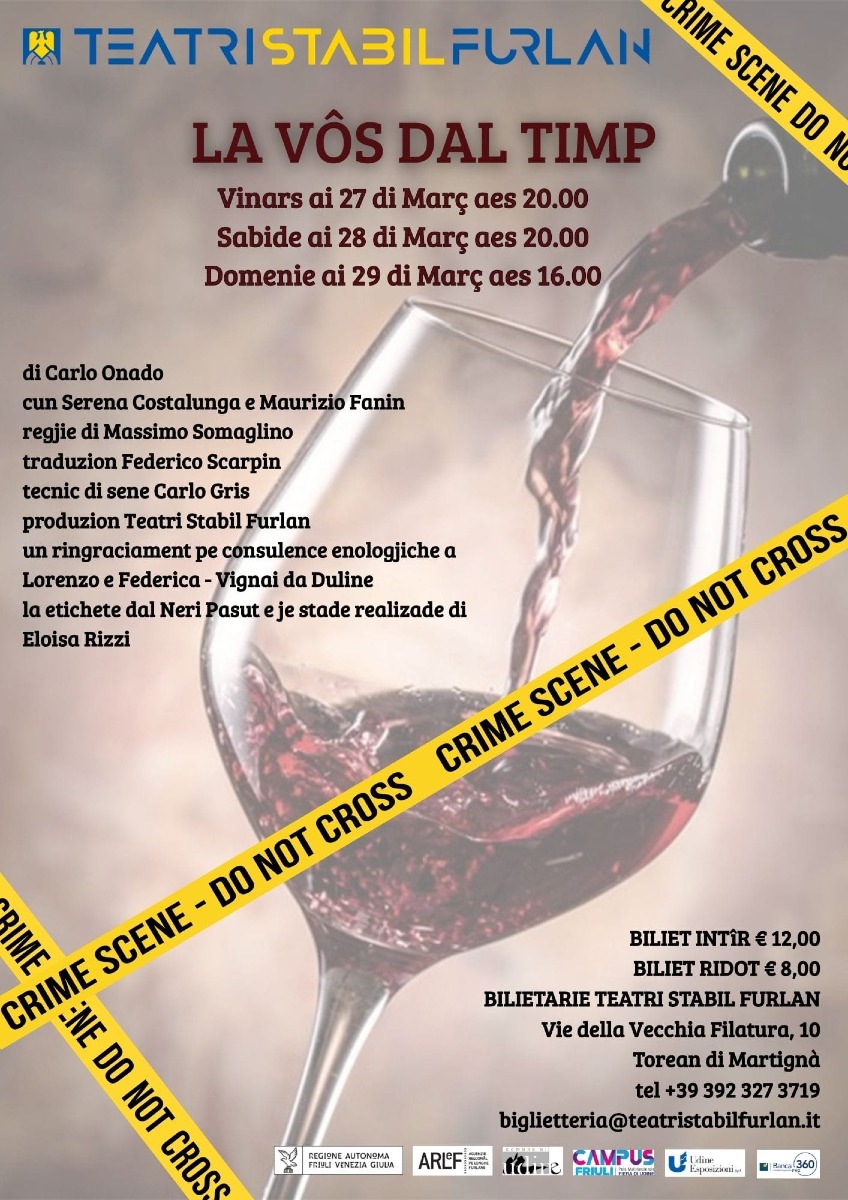 Il testo è di Carlo Onado, giallista milanese appassionato di vini, che ha scritto questa avvincente storia appositamente per il Teatri Stabil Furlan, lasciandola tradurre poi in ‘marilenghe’ da Federico Scarpin. C’è molto Friuli nel giallo di Onado in quanto per i dettagli tecnici sulla coltivazione delle viti e sulla vinificazione si è avvalso anche della preziosa consulenza di Lorenzo Mocchiutti e Federica Magrini dell’azienda ‘Vignai da Duline’ di Villanova del Judrio che vanta metodi di coltivazione molto innovativi e rispettosi della natura.