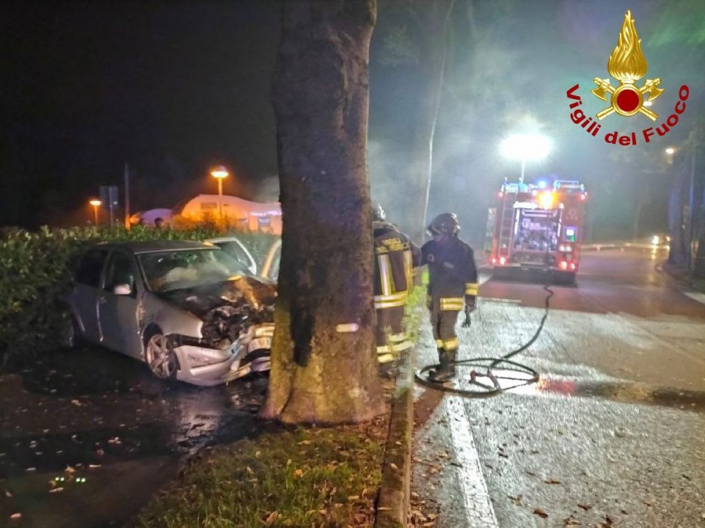 Dopo aver perso il controllo, l'auto ha impattato sul tronco di un albero a lato carreggiata e poi preso fuoco. I Vigili del Fuoco hanno soccorso l'occupante uscito illeso dall'impatto e hanno spento il principio d'incendio dell'autovettura.