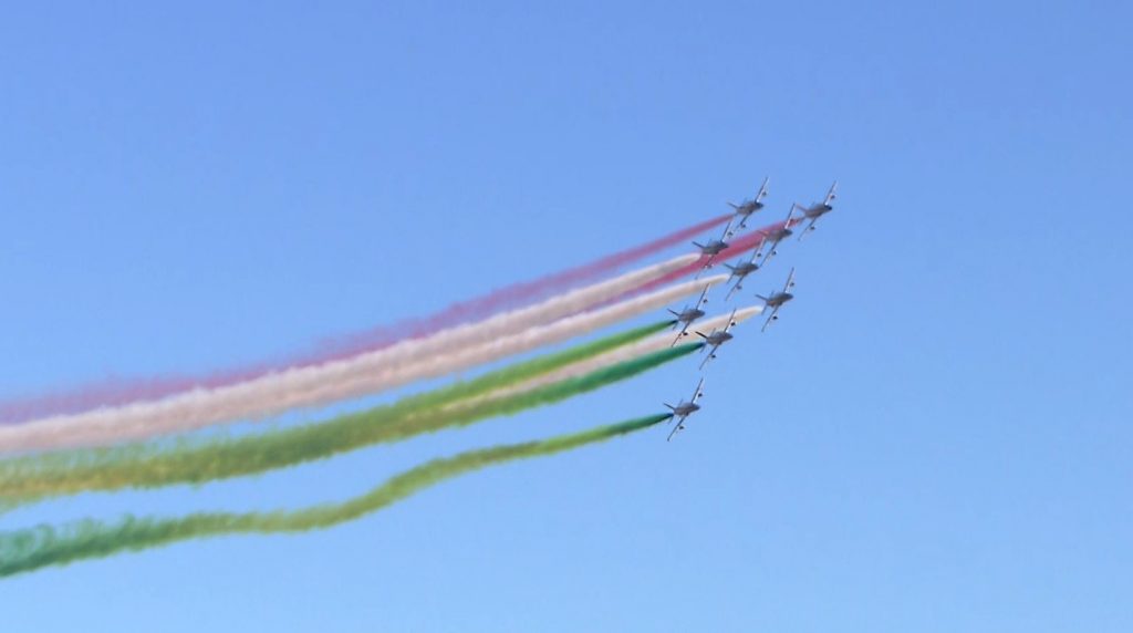 Come da tradizione, la cerimonia a terra è stata preceduta dall'esclusivo passaggio di consegne in volo, con i due piloti, assieme al resto della formazione, impegnati in una serie di evoluzioni fino al momento in cui Farina si è separato dagli altri, lasciando i cosiddetti gregari al comando di Vit.