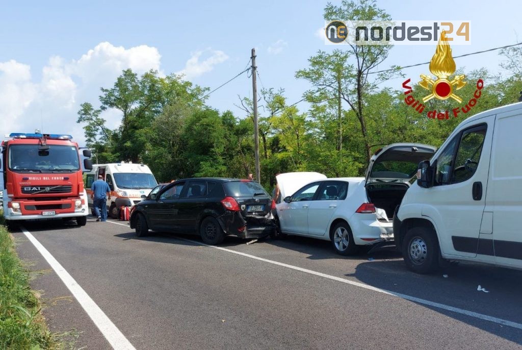 I Vigili del Fuoco di Maniago sono intervenuti alle 10.30 di oggi martedì 20 luglio 2021 per un tamponamento che ha visto coinvolti cinque autoveicoli in via S. Martino a Montereale Valcellina.