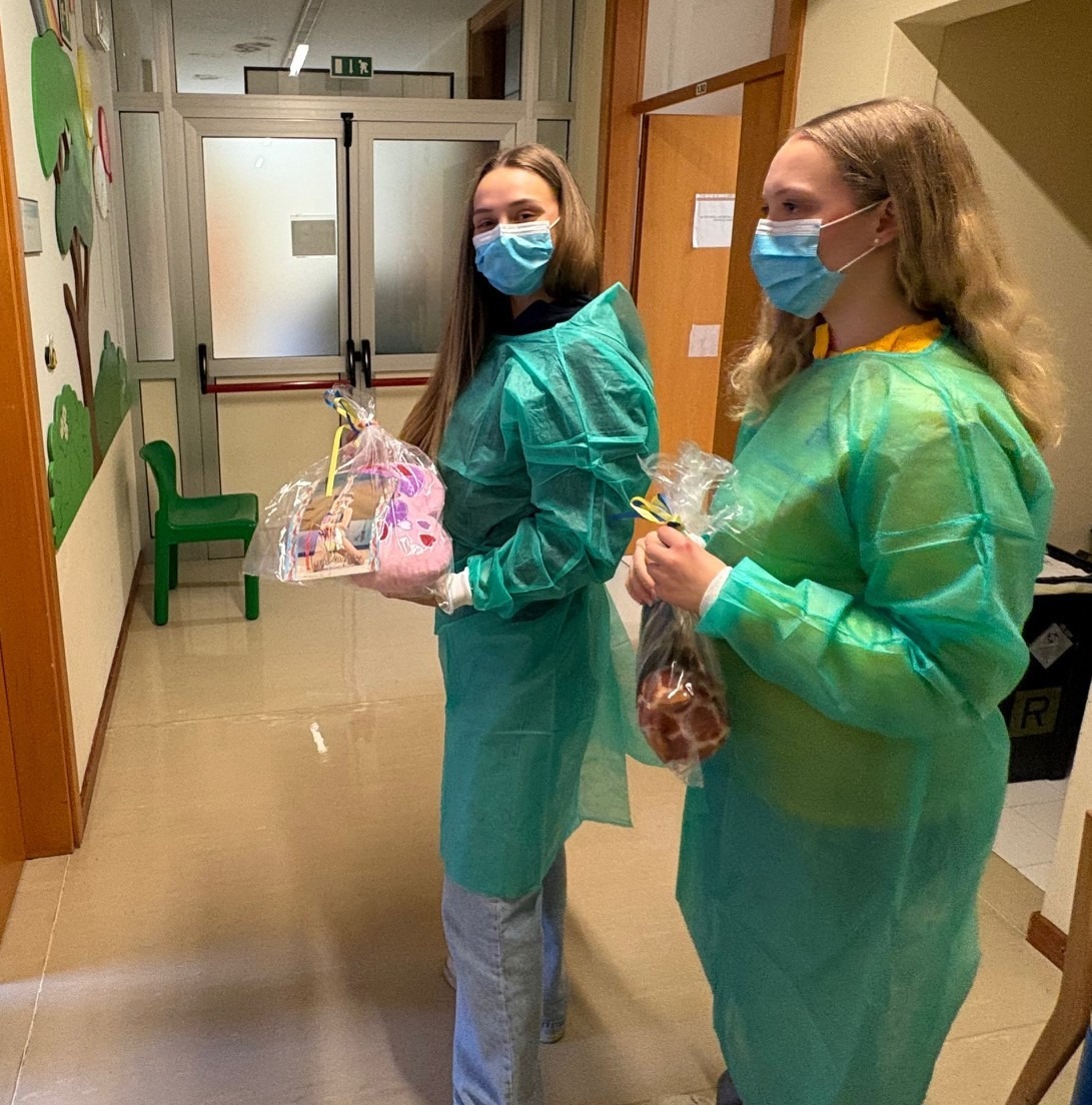 L'atleta friulana non è arrivata a mani vuote: ha portato con sé decine di peluche, raccolti nel corso delle sue numerose competizioni nazionali e internazionali. È tradizione, infatti, che il pubblico della ritmica lanci doni in pedana al termine delle esibizioni; Tara ha scelto di dare una nuova casa a questi soffici compagni di viaggio, regalandoli ai piccoli pazienti per offrire loro un momento di leggerezza.