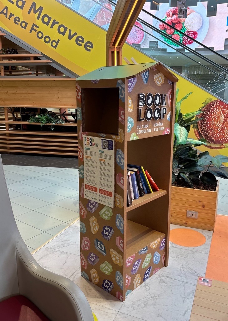 Nel cuore della galleria commerciale trova ora spazio una delle iconiche casette dei libri del progetto Book Loop: un punto di scambio libero e accessibile a tutti, dove chiunque può prendere un libro, lasciarne un altro, far circolare idee e scoperte letterarie.