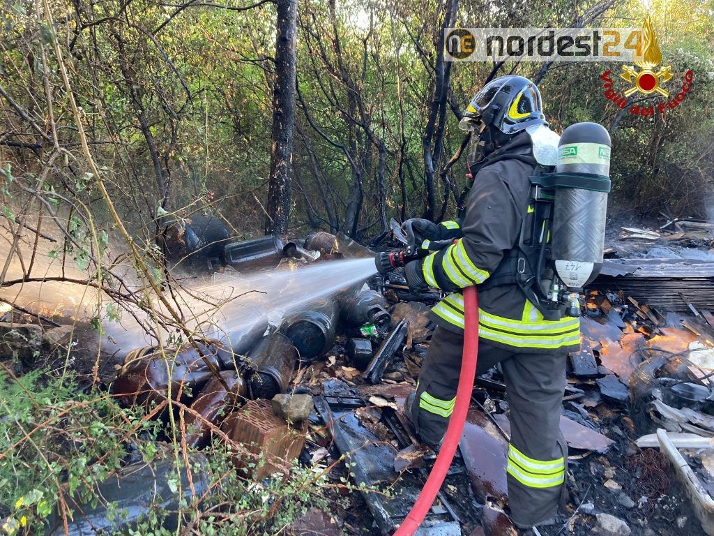 I pompieri, arrivati sul luogo con 2 autopompe, 1 autobotte e 12 operatori, hanno circoscritto e spento le fiamme con all’interno materiale vario, tra cui anche delle bombole di GPL, coinvolte nelle fiamme.