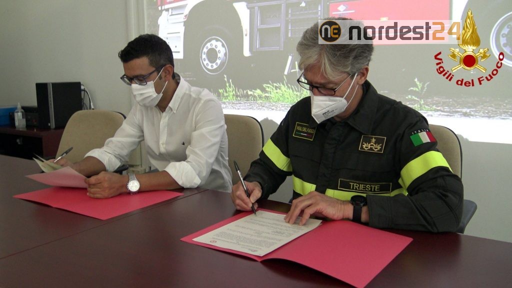 Nella mattinata dell’11 agosto 2021, presso la sede centrale del Comando VV.F. di Trieste, il Comandante provinciale dei Vigili del Fuoco di Trieste, arch. Mauro Luongo, ed il referente della Rete Ferroviaria Italiana (RFI) del Friuli Venezia Giulia, ing. Marco Sena, hanno firmato l’accordo di comodato d’uso dell’autopompa bimodale che consentirà l’accesso alle squadre di soccorso dei Vigili del Fuoco sulla linea ferroviaria.