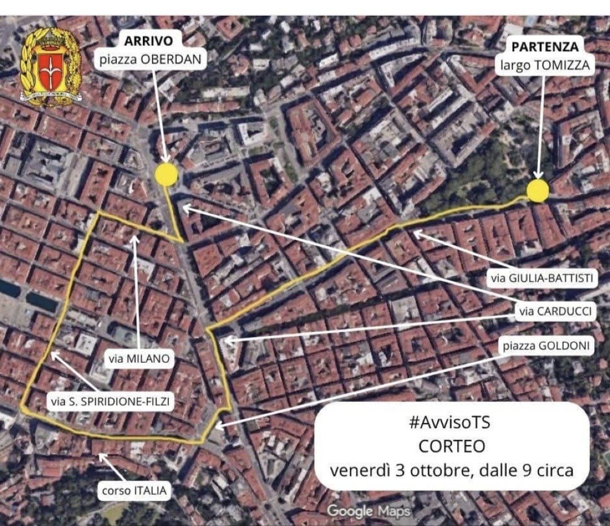 Il corteo organizzato dalla CGIL ha invece attraversato le vie cittadine fino a raggiungere piazza Oberdan, dove si sono radunati circa 5000 partecipanti. In questo momento la piazza è animata dagli interventi degli organizzatori.