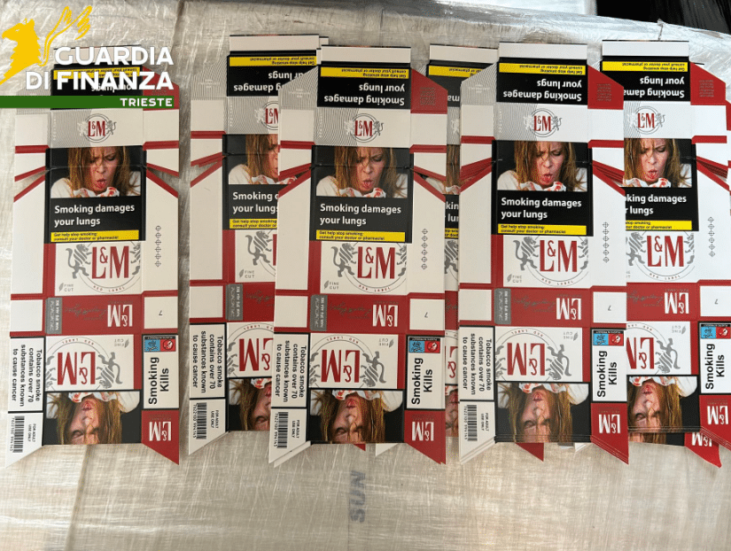 Sequestrati a Trieste 480.000 imballaggi contraffatti del marchio LeM. Scoperta una rete legata al contrabbando di sigarette.