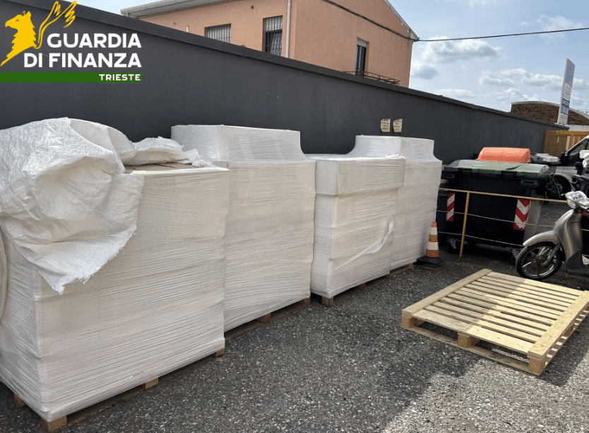 TRIESTE – Nell’ambito di un’operazione mirata al contrasto dei traffici illeciti, i Finanzieri del Comando Provinciale hanno messo a segno un importante sequestro di materiale destinato alla contraffazione del packaging per sigarette. In una struttura di self storage, situata nella provincia, sono stati individuati 4 bancali contenenti 480.000 confezioni contraffatte con il marchio “LeM”, di proprietà della nota multinazionale del tabacco Philip Morris International.