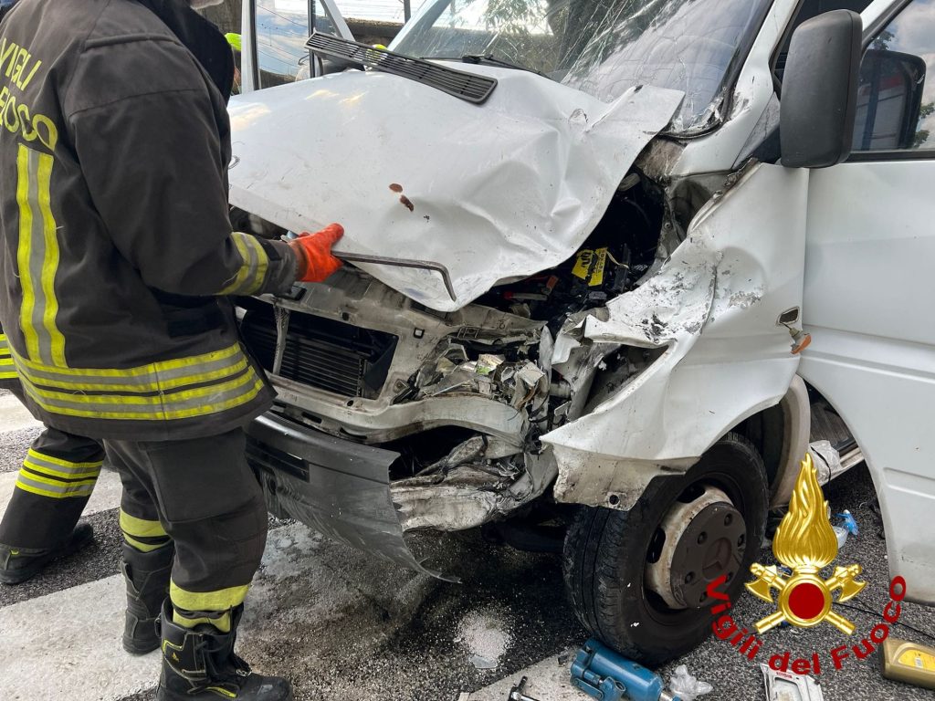 Giunta sul posto, la squadra dei vigili del fuoco, assieme al personale sanitario del 118, è riuscita ad estrarre il conducente del furgone, anche con l'ausilio della barella spinale, rimasto ferito dallo schianto frontale.