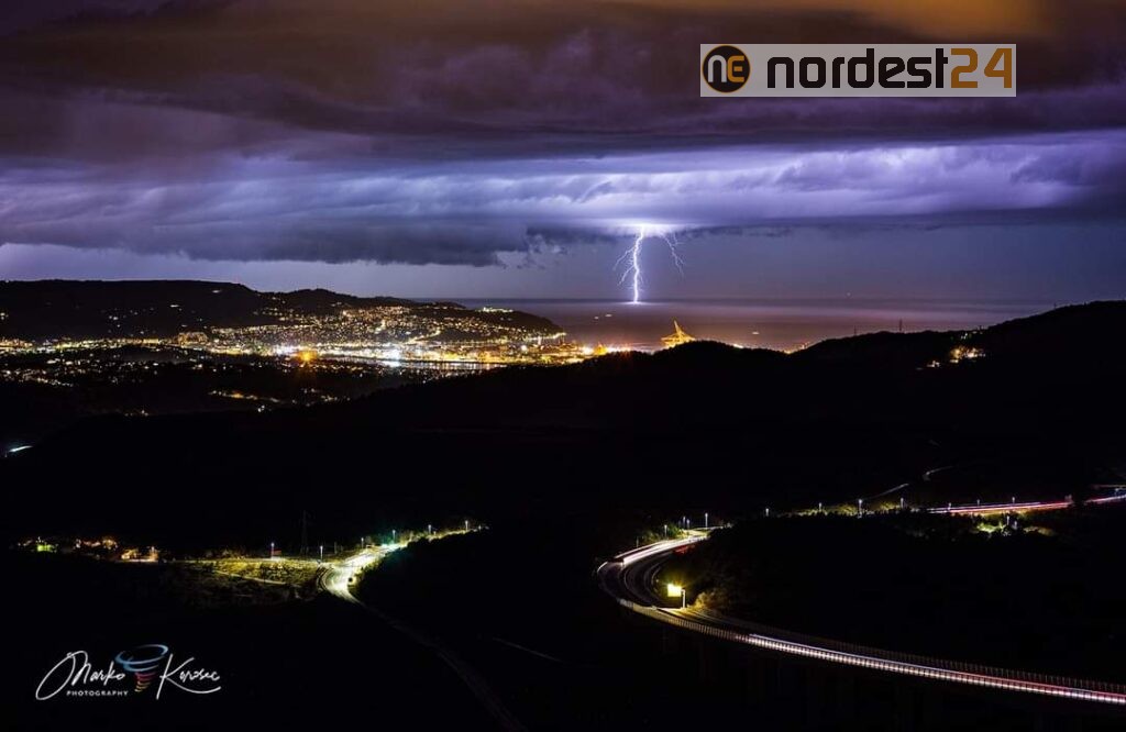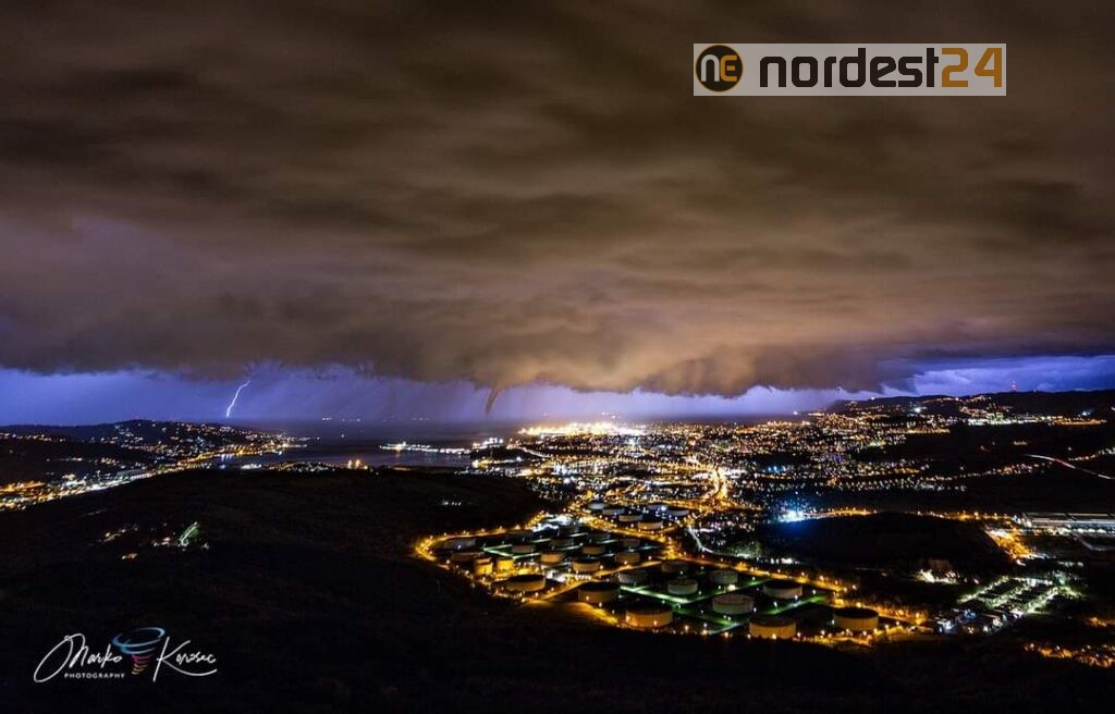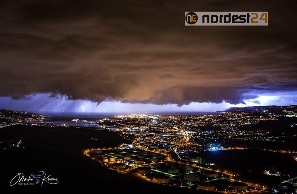 Tromba d'aria e supercella temporalesca nel cielo di Trieste