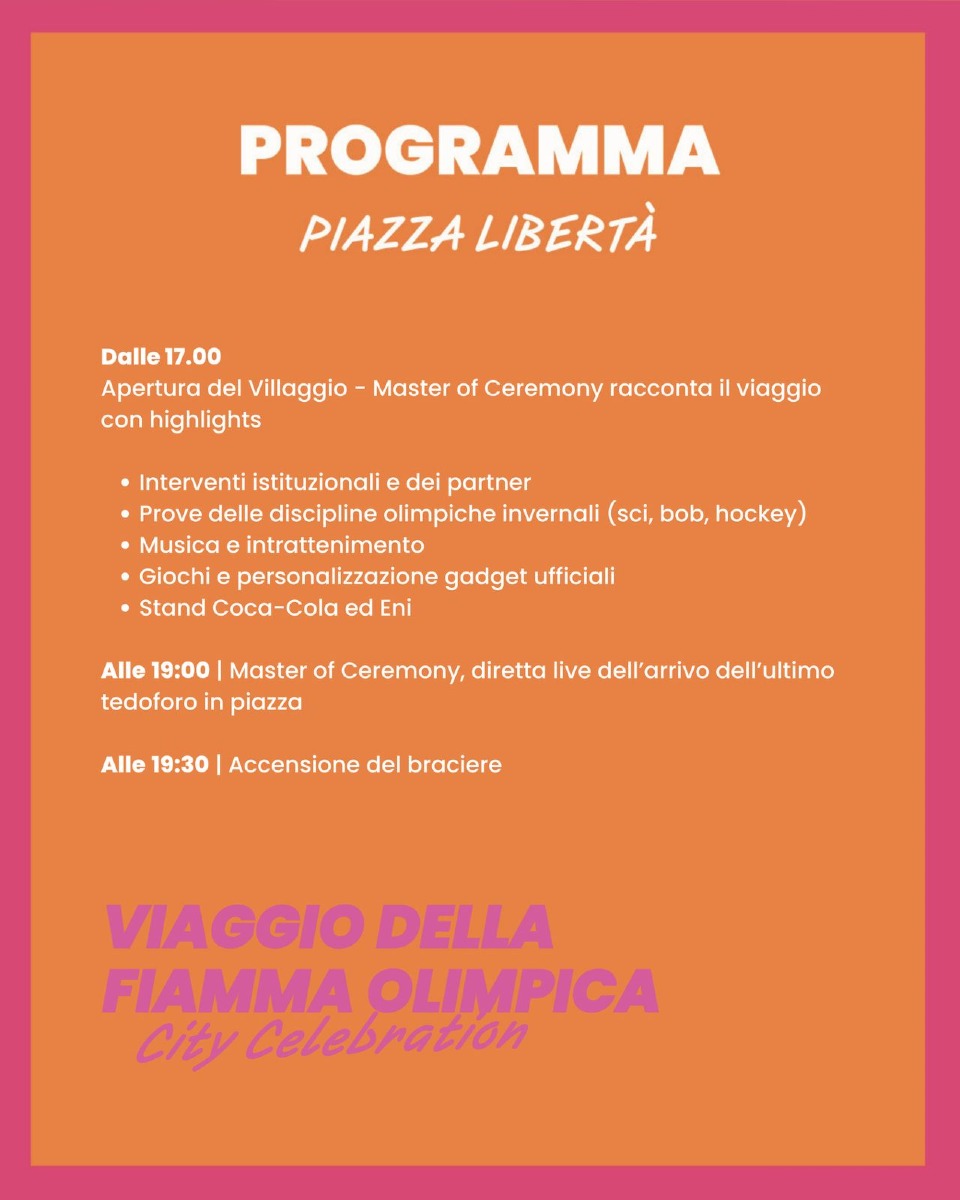 Chi aspetterà il corteo in piazza potrà inoltre provare alcune delle più importanti discipline olimpiche come lo sci e il bob nelle postazioni dedicate, esperienze in virtual reality e giochi come l’air hockey, oltre che ritirare e personalizzare i propri gadget negli appositi stand allestiti dai due principali partner dell’iniziativa: Coca-Cola ed Eni. Infine sarà allestita per tutti gli appassionati una postazione fotografica con la torcia olimpica.