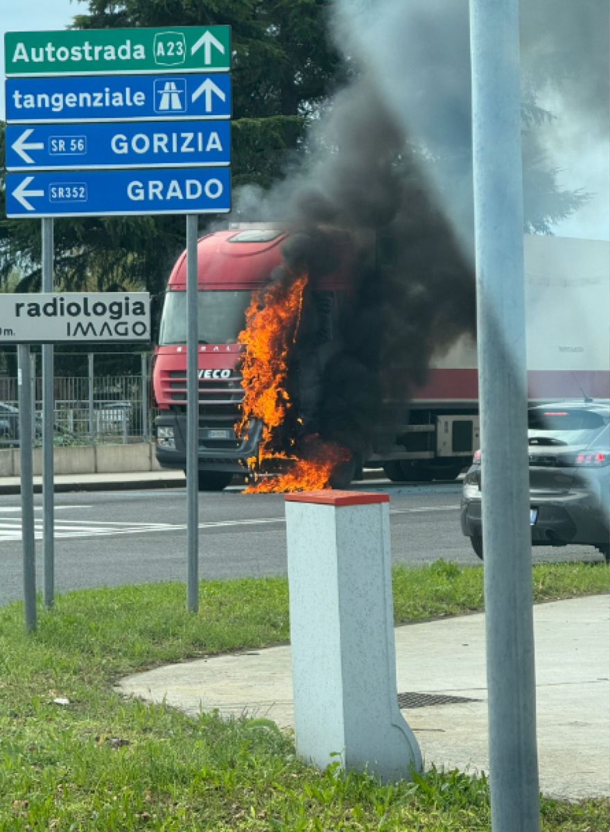Fiamme e fumo in strada a Udine: camion va a fuoco | FOTO