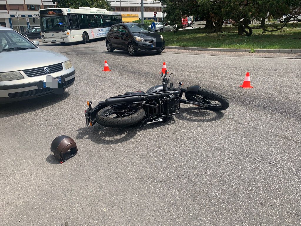 È accaduto questa mattina, venerdì 3 giugno 2022, verso le ore 12:30 a Udine in piazzale D'Annunzio, dove un centauro, nell'immettersi in una rotonda, è scivolato rovinando sull'asfalto.