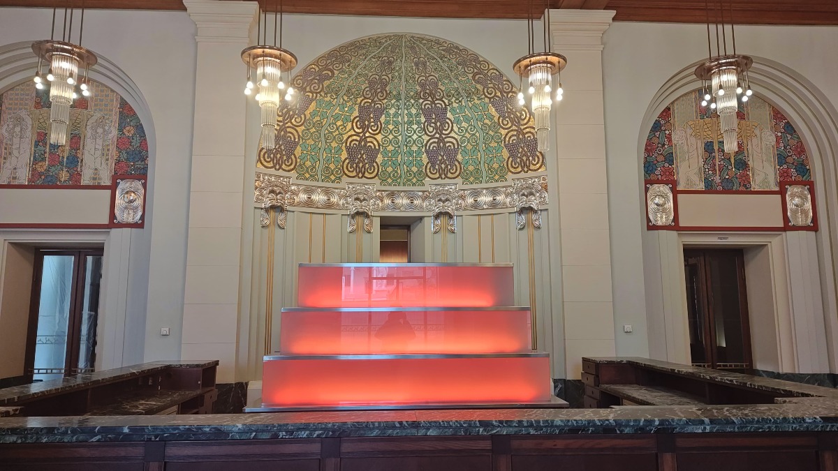 Nel cuore del restyling, particolare attenzione è stata riservata alla valorizzazione della raffinata cornice storica del locale, impreziosita da colonne, lampadari e mosaici Art Nouveau.