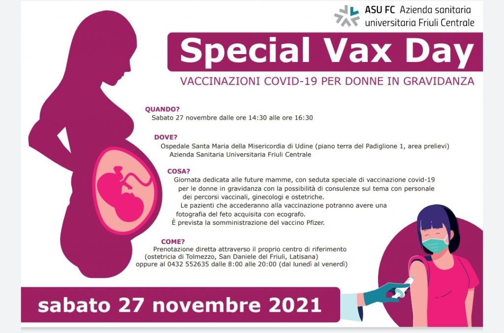 Sabato 27 novembre dalle ore 14.30 alle ore 16.30 è prevista una seduta speciale di vaccinazione covid-19 per le donne in gravidanza.