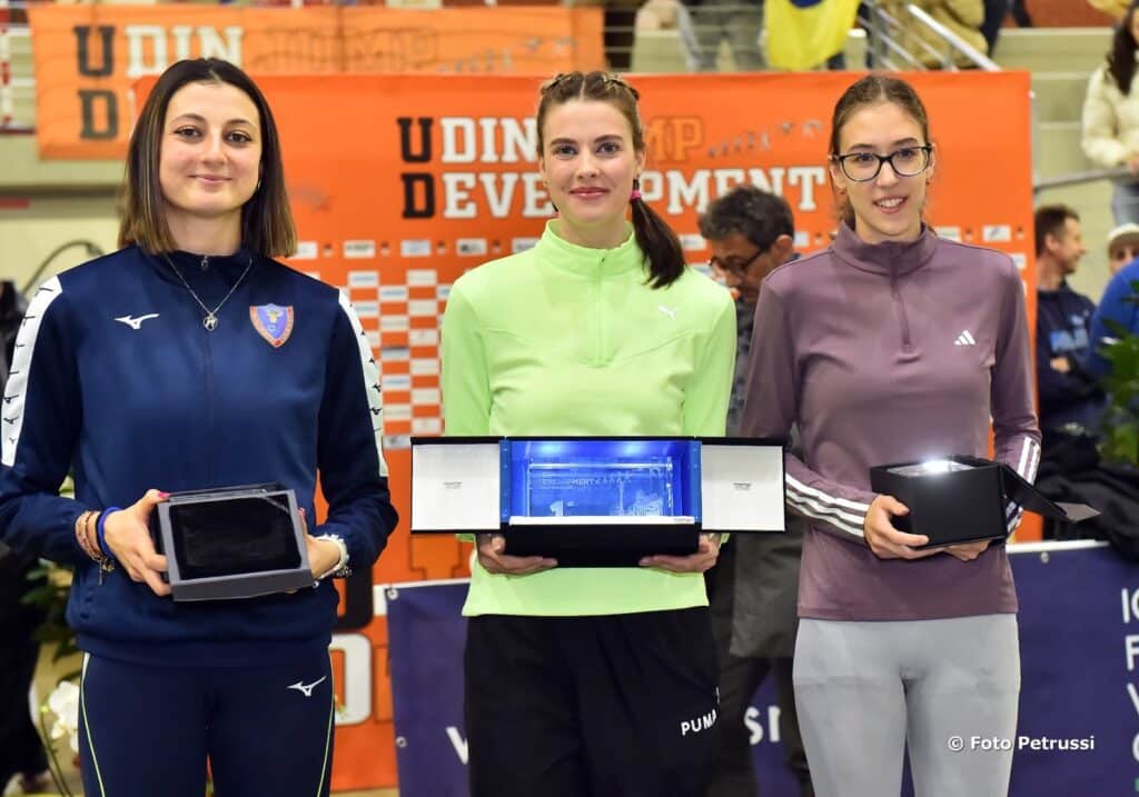 LA PROVA FEMMINILE. Bastano due salti alla fuoriclasse di Dnipro per imporsi davanti al pubblico friulano. L’atleta supera al primo tentativo 1,91 e 1,94, fermandosi dopo tre errori a 1,98. Per Mahuchikh la misura stabilita a Udine è la quinta al mondo nel 2025. La prova friulana rappresentava per lei il debutto agonistico nel nuovo anno dopo aver vinto nel 2024 i Giochi Olimpici di Parigi, i campionati Europei di Roma e, soprattutto, dopo aver stabilito con 2,10 il nuovo record iridato. Alle sue spalle chiude l’ungherese Lilianna Batori, 17 anni, campionessa europea U18 in carica. La ragazza magiara migliora due volte il proprio primato personale: prima vola a 1,88, cancellando l’1,87 stabilito il 10 febbraio 2024; quindi si arrampica sino a 1,91, superando per la prima volta in carriera il muro dell’1,90, soglia d’eccellenza internazionale. Chiude il podio l’azzurra Idea Pieroni (Carabinieri). Per lei la misura di 1,88, dopo aver sfiorato di pochissimo in due circostanze l’1,91 con cui avrebbe eguagliato il primato personale stagionale. Eguaglia invece il suo season best l’estone Elisabeth Pihela, quarta con 1,88. Quinta posizione a pari merito per Marija Vukovic (Montenegro) e Buse Savaskan (Turchia), autrici entrambe di 1,82.