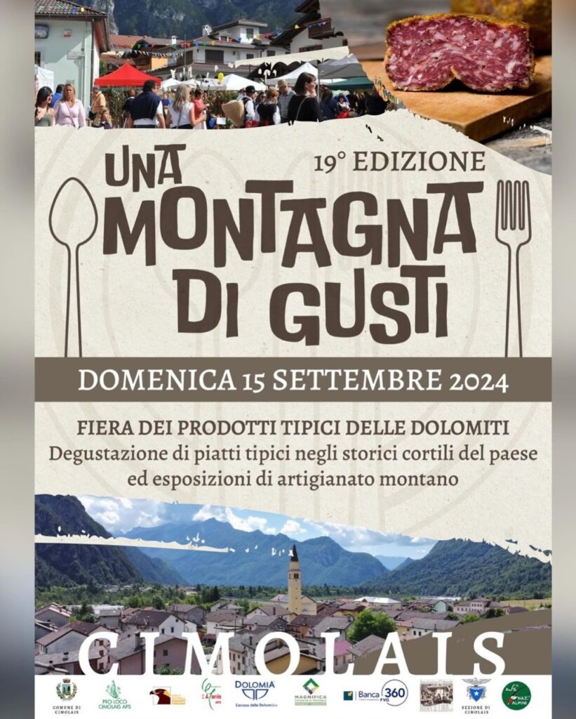 A Cimolais è tutto pronto per “Una Montagna di Gusti”, la fiera dedicata ai prodotti tipici della montagna giunta alla sua diciannovesima edizione che si terrà domenica 15 settembre. Stand enogastronomici e artigianali impreziosiranno le vie del paese, in una giornata di festa e di valorizzazione dei prodotti locali.