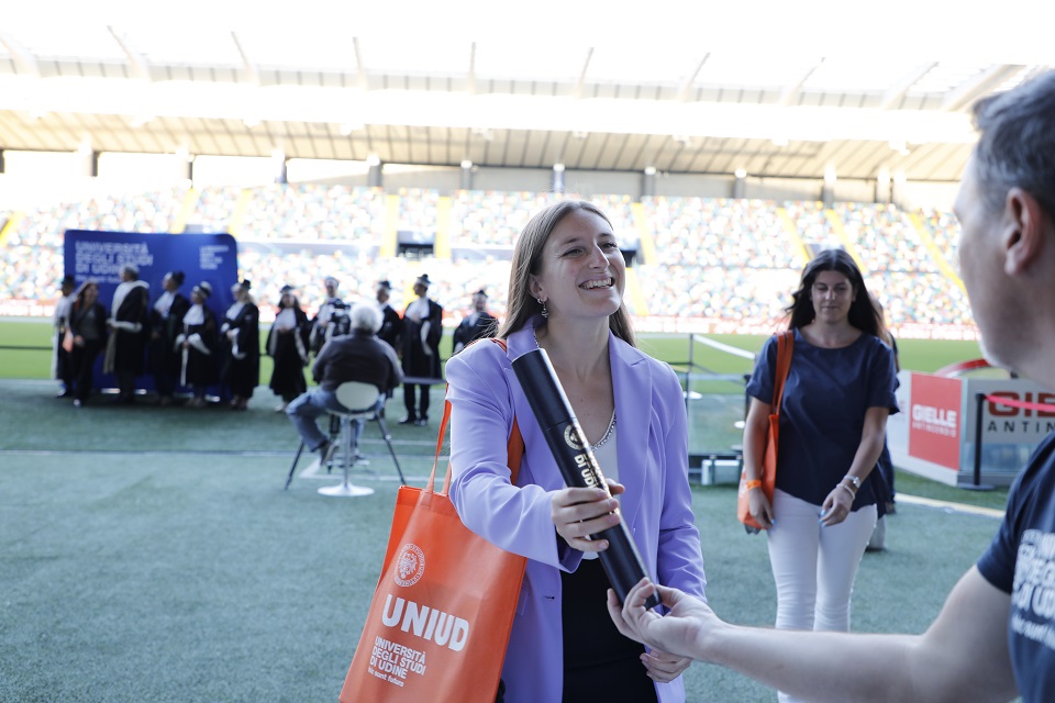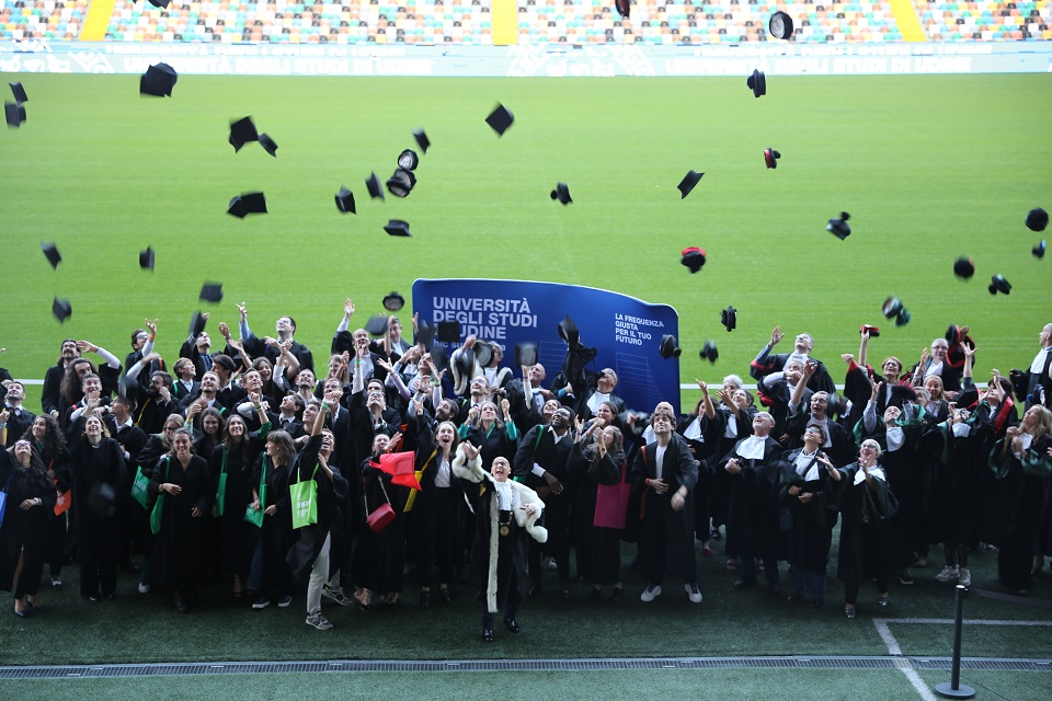 UDINE, 21 settembre 2024 – Un grande successo ha contraddistinto il quarto Graduation Day dell’Università di Udine, che ha visto la partecipazione di circa 5000 persone, tra cui circa 900 laureati accompagnati da familiari e amici, un centinaio di docenti e una cinquantina di volontari. Questo evento, dedicato ai laureati dell’ultimo anno, si è svolto questo pomeriggio allo Stadio Friuli–Bluenergy Stadium, creando un’atmosfera festosa e ricca di emozione.