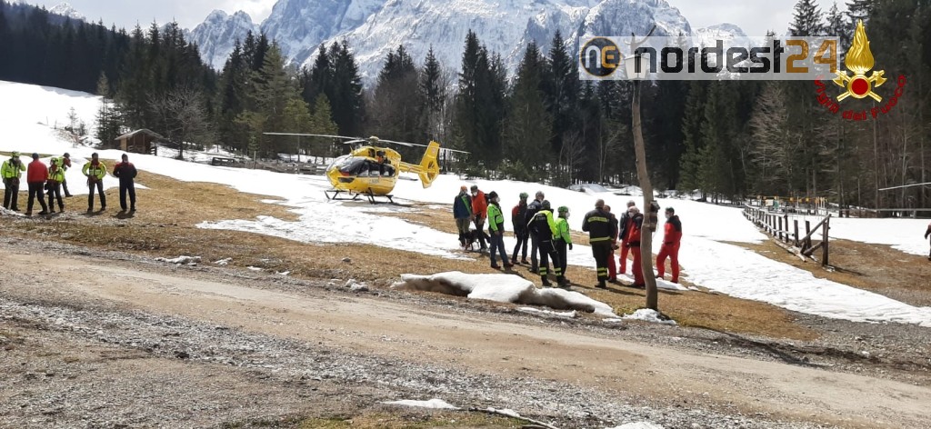 Sul posto sono arrivati tre elicotteri, l'elisoccorso regionale, l'elicottero della Protezione Civile, il Suem di Pieve di Cadore e tre unità cinofile.