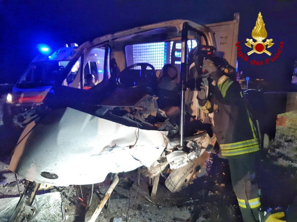 I pompieri hanno liberato dalle lamiere contorte l'occupante del furgone utilizzando le pinze e le cesoie oleodinamiche ed il pistone divaricatore.